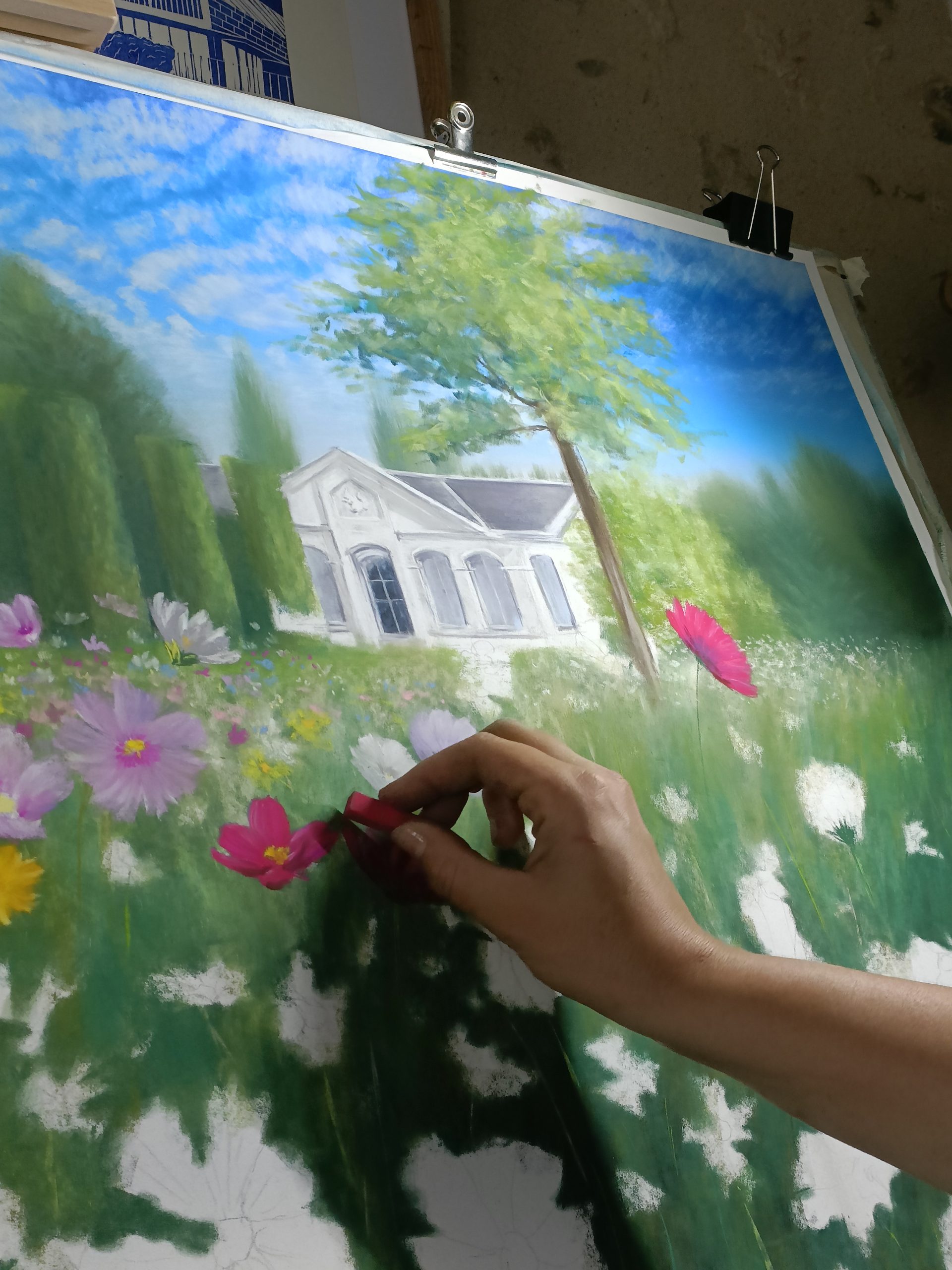 C’est dans cette continuité que je propose aujourd’hui des œuvres sur commande, réalisées à partir de photos. Loin d’une simple reproduction, chaque pastel et aquarelle est une relecture artistique, une manière d’insuffler de la douceur et de la poésie à un instant capturé. J’aime retranscrire la subtilité des nuances, la profondeur d’un regard ou l’atmosphère d’un paysage, en y apportant ma sensibilité et mon style.